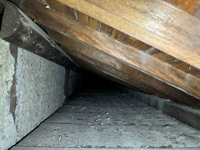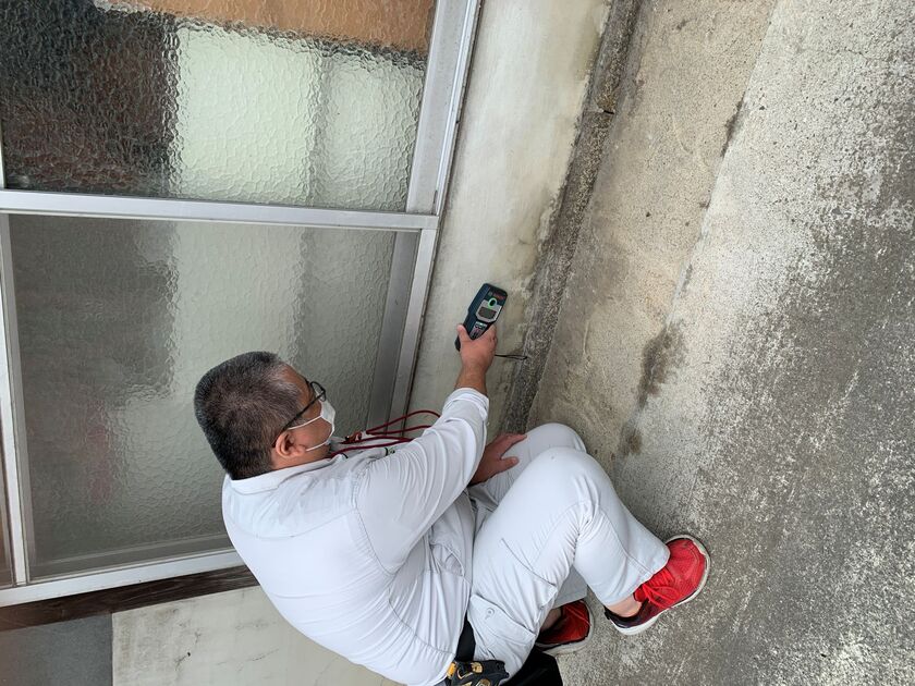 M様邸建物調査の様子。建物の隅々までチェックしていきます。
